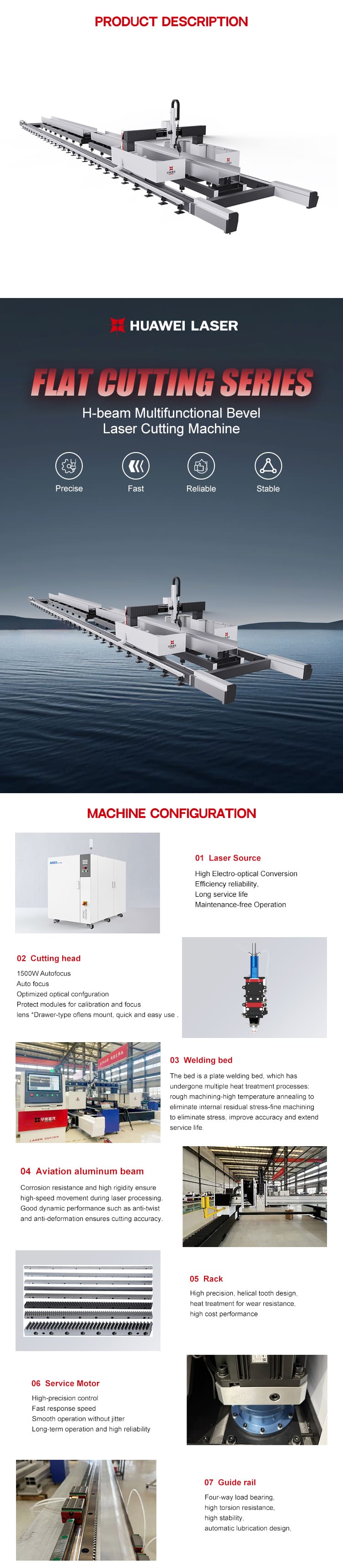 मेटल स्टील प्रोसेसिंगसाठी 3D सीएनसी एच-बीम लेझर कटिंग मशीन 12000W हे शेनयांग हुआवेई लेझर इक्विपमेंट मॅन्युफॅक्चरिंग कंपनी लिमिटेडचे एक उच्च-परिशुद्धता औद्योगिक समाधान आहे. एच-बीम, स्टील स्ट्रक्चर्स आणि हेवी-ड्युटी मेटल घटकांच्या कार्यक्षम कटिंगसाठी डिझाइन केलेले आहे, ते उच्च-पॉवर फायबर 2000-000 वॉर्डसह आहे. जलद गती, खोल प्रवेश आणि गुळगुळीत कटिंग कडा सुनिश्चित करा. 3D CNC नियंत्रण प्रणाली मोठ्या प्रमाणात बांधकाम, जहाजबांधणी, यंत्रसामग्री उत्पादन आणि स्टील प्रक्रिया उद्योगांच्या गरजा पूर्ण करण्यासाठी जटिल आणि अचूक कटिंग करण्यास परवानगी देते. स्थिर कार्यप्रदर्शन, कमी देखभाल आणि दीर्घ सेवा आयुष्यासह, हे मशीन प्रगत तंत्रज्ञानासह फॅक्टरी-थेट किंमत एकत्र करते, ज्यामुळे हेवी औद्योगिक धातू कापण्यासाठी तुमची विश्वसनीय निवड बनते.