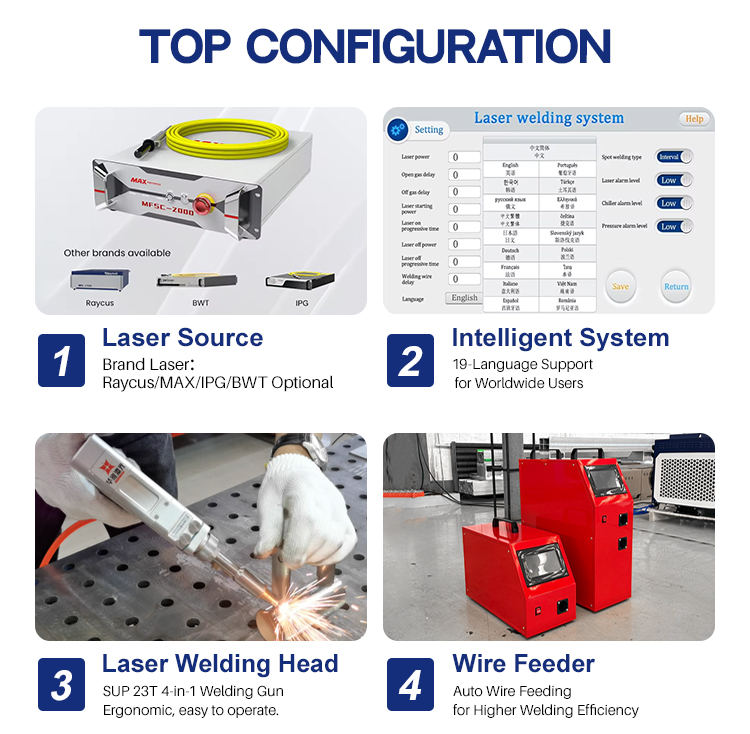 प्रिसिजन सीम वेल्डिंगसाठी नियंत्रित-आउटपुट 2000W 3000W वॉटर-कूल्ड हँडहेल्ड लेझर वेल्डिंग मशीन सीम वेल्डिंग ऍप्लिकेशन्सच्या मागणीसाठी स्थिर, समायोज्य आणि अत्यंत अचूक वेल्डिंग कार्यप्रदर्शन प्रदान करण्यासाठी डिझाइन केले आहे. त्याची प्रगत वॉटर-कूल्ड फायबर लेसर प्रणाली सातत्यपूर्ण वीज वितरण आणि उत्कृष्ट थर्मल व्यवस्थापन सुनिश्चित करते, कमीत कमी स्पॅटर आणि उष्णता विकृतीसह गुळगुळीत, एकसमान वेल्ड सीम सक्षम करते. एर्गोनॉमिक हँडहेल्ड ऑपरेशन, अचूक आउटपुट नियंत्रण आणि विश्वासार्ह दीर्घकालीन स्थिरतेसह, हे मशीन स्टेनलेस स्टील, कार्बन स्टील, ॲल्युमिनियम आणि इतर धातूंमध्ये मेटल फॅब्रिकेशन, उपकरणे तयार करणे आणि उच्च दर्जाचे औद्योगिक उत्पादन यासारख्या उद्योगांमध्ये अचूक सीम वेल्डिंगसाठी आदर्श आहे.