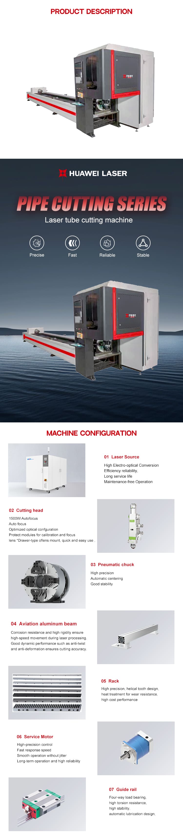 HUAWEI LASER 6000W उच्च-परिशुद्धता डबल-चक्स ट्यूब फायबर लेझर कटिंग मशीन गोल, चौरस आणि अनियमित मेटल ट्यूबच्या कार्यक्षम आणि अचूक प्रक्रियेसाठी डिझाइन केलेले आहे. त्याची ड्युअल-चक सिस्टीम हाय-स्पीड कटिंग दरम्यान स्थिर क्लॅम्पिंग, किमान कंपन आणि अचूक रोटेशन सुनिश्चित करते. उच्च-कार्यक्षमता फायबर लेसर स्त्रोत आणि बुद्धिमान नियंत्रण सॉफ्टवेअरसह सुसज्ज, ते स्वच्छ कट, गुळगुळीत कडा आणि उत्कृष्ट पुनरावृत्तीक्षमता प्रदान करते. HUAWEI लेसर डबल-चक्स ट्यूब फायबर लेझर कटिंग मशीन हे एक प्रगत हँडहेल्ड लेझर वेल्डिंग मशीन पर्यायी आहे जे विशेषतः उच्च-कार्यक्षमतेच्या ट्यूब आणि पाईप प्रक्रियेसाठी डिझाइन केलेले आहे. दुहेरी वायवीय चकसह सुसज्ज, ते गोल, चौरस आणि अनियमित धातूच्या नळ्यांवर गुळगुळीत, अचूक कट करण्यासाठी स्थिर क्लॅम्पिंग, स्वयंचलित केंद्रीकरण आणि अचूक रोटेशन सुनिश्चित करते. त्याचा हाय-पॉवर फायबर लेसर स्त्रोत जलद कटिंग गती, स्वच्छ कडा आणि किमान थर्मल विकृती प्रदान करतो. मेटल फॅब्रिकेशन, फर्निचर मॅन्युफॅक्चरिंग, फिटनेस इक्विपमेंट प्रोडक्शन आणि ऑटोमोटिव्ह कंपोनेंट्ससाठी इंजिनिअर केलेली, HUAWEI लेसर ट्यूब कटिंग सिस्टीम आधुनिक औद्योगिक अनुप्रयोगांसाठी उत्कृष्ट अचूकता, विश्वासार्हता आणि उत्पादकता प्रदान करते. हे मशीन स्वयंचलित लोडिंग, ऑप्टिमाइझ कटिंग पथ आणि जलद सामग्री बनविण्यास समर्थन देते. फिटनेस उपकरणे, बांधकाम पाईप्स आणि कस्टम मेटल फॅब्रिकेशन. हे ट्यूब-प्रोसेसिंग ऍप्लिकेशन्ससाठी मजबूत विश्वासार्हता आणि सातत्यपूर्ण उत्पादकता प्रदान करते.